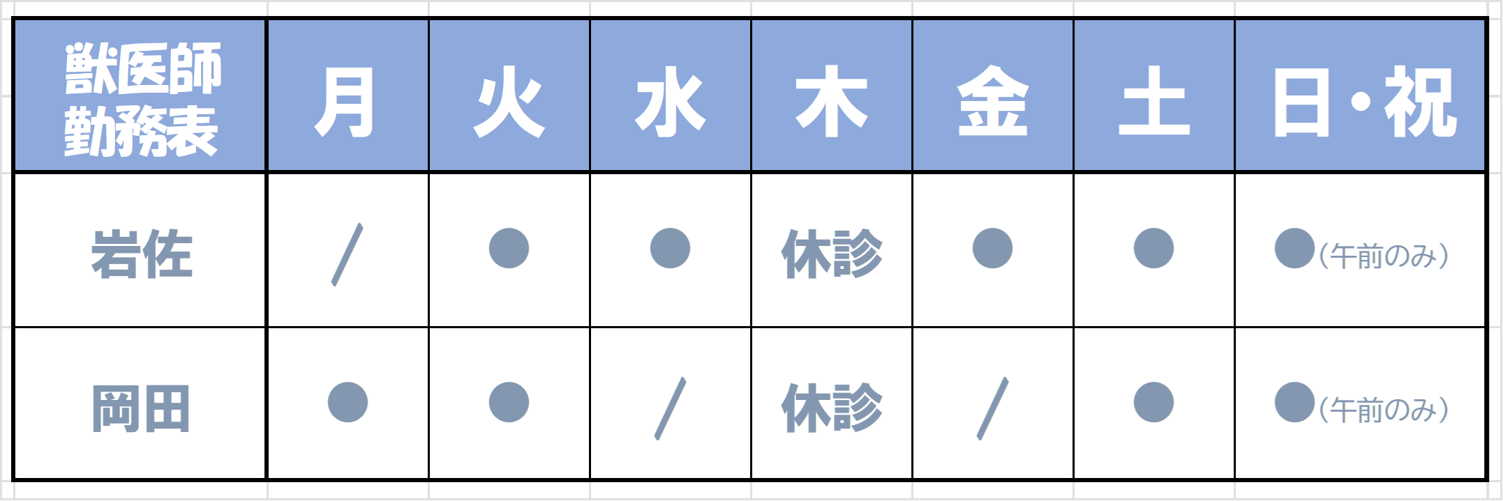 院長の岩佐獣医師の診察曜日は変更はありません。